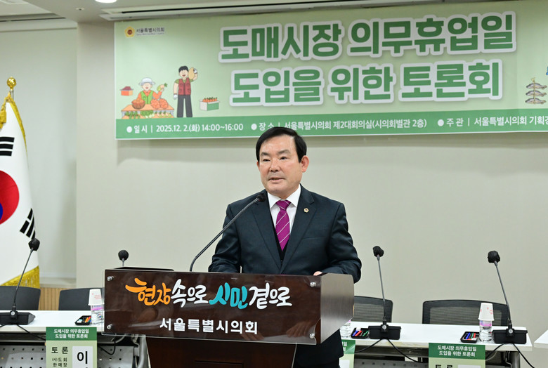 [서울 세계타임즈=이장성 기자] 12월 2일(화) 오후 2시 서울특별시의회 제2대회의실에서 임춘대 기획경제위원장(송파3, 국민의힘)의 주관으로 ‘도매시장 의무휴업일 도입을 위한 토론회’가 열렸다.