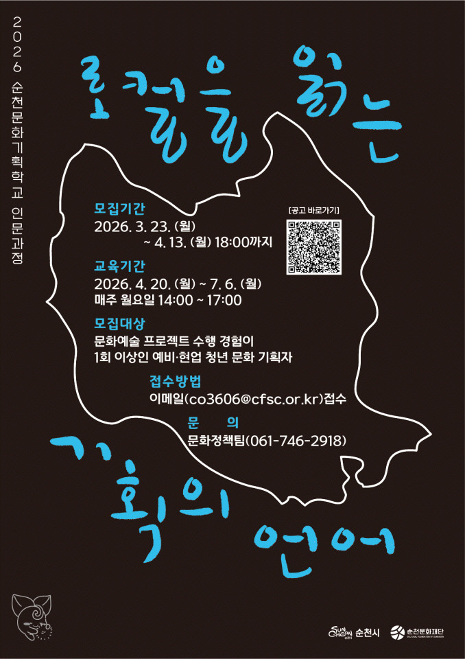 순천문화재단 관계자는 “머릿속의 반짝이는 아이디어를 설득력 있는 기획의 문장으로 풀어내는 데 어려움을 겪는 문화기획자들의 많은 참여 바란다”며 “함께 읽고, 쓰고, 사유하는 과정을 통해 자신만의 기획의 언어를 만들어가는 의미 있는 시간이 될 것”이라고 전했다.