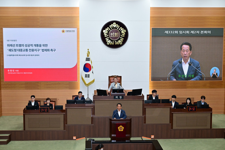 [서울 세계타임즈=이장성 기자] 서울특별시의회 유정인 의원(국민의힘, 송파구 제5선거구)은 8월 28일 제332회 임시회 본회의 5분 자유발언을 통해, 위례선 트램의 성공적 개통과 안전한 정착을 위해 ‘궤도형 대중교통 전용지구’ 지정 및 법제화가 반드시 필요하다고 강력히 촉구했다.
