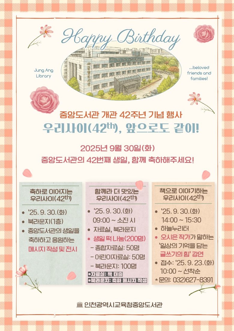 중앙도서관 관계자는 “42주년 기념행사는 시민과 함께 걸어온 시간을 되새기고 지역사회와의 소통을 이어가는 뜻깊은 자리”라며 “많은 시민의 참여를 기대한다”고 말했다.