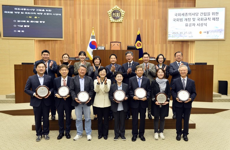 이순열 의장은 “각자 소임을 다해주신 유공자들 덕분에 국회세종의사당 설치를 위한 2021년 국회법 개정안 통과에 이어 지난 10월 국회규칙이 제정될 수 있었다”며 “앞으로도 행정수도 완성을 위한 관심과 지지를 당부드린다”고 말했다.