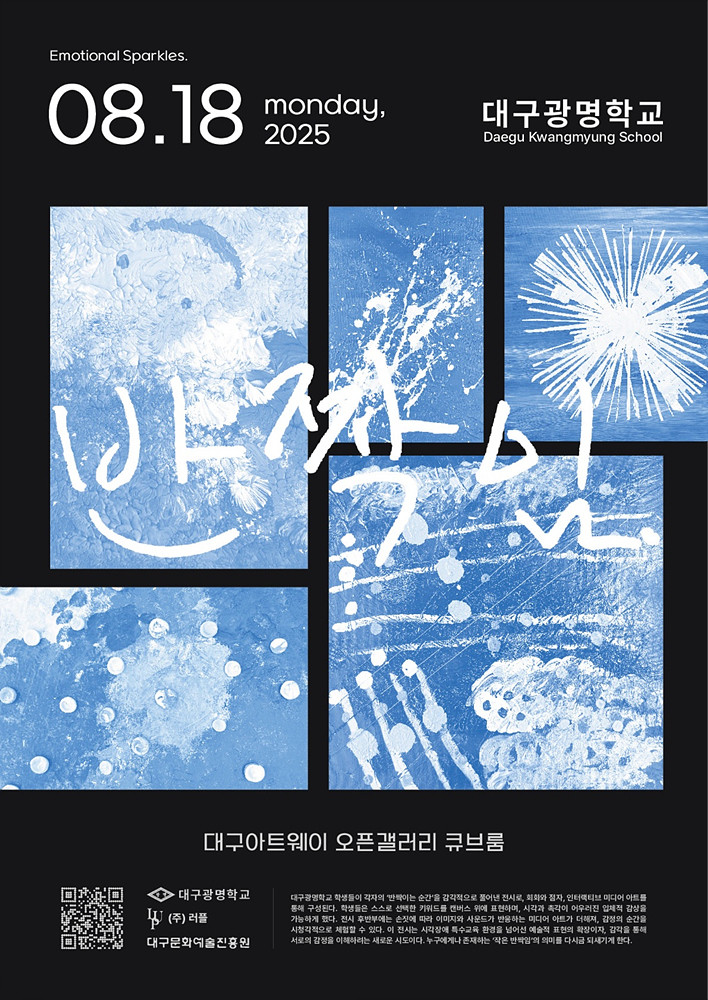 참여 학생들은 각자의 ‘반짝이는 순간’을 회화와 점자, 인터랙티브 미디어아트로 표현했다. 특히 관람객의 손짓에 따라 이미지와 사운드가 반응하는 인터랙티브 미디어아트 설치작품은 감각적 상호작용을 통해 관람객이 감정의 순간을 시청각적으로 체험할 수 있게 한다.
