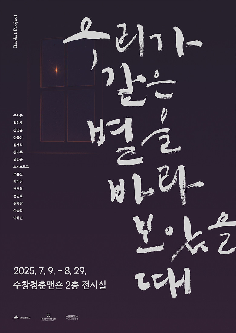 수창청춘맨숀 Re:Art 프로젝트 2부는 오는 7월 9일부터 8월 29일까지 ‘우리가 같은 별을 바라볼 때’ 전(展)을 개최한다. 이번 전시는 대구 지역 주요 독립운동사를 중심으로 재조명하고, 예술 작품으로 광복의 의미를 되새기고자 한다.