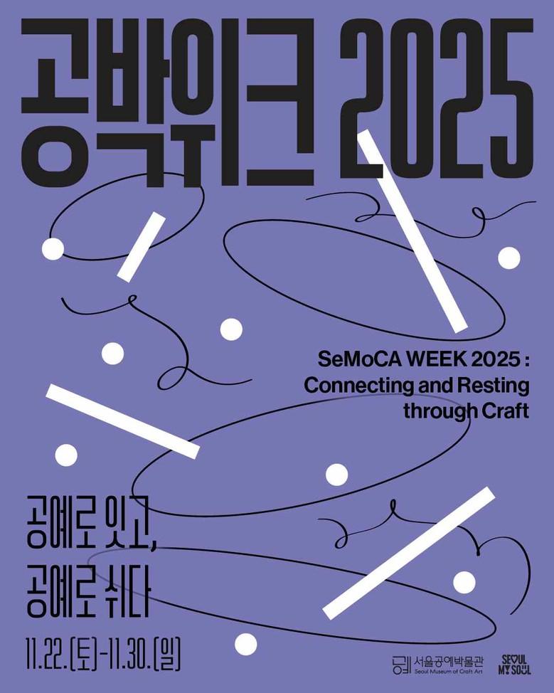 - 작가공방 밀착투어(7종)·마음 챙김 힐링 투어(9종)·특별 행사(4종),총 20개 프로그램 모두 무료 [서울 세계타임즈=이장성 기자] 서울공예박물관(관장 김수정)은 11월 22일부터 30일까지, 개관 4주년을 기념해 <공박위크 2025: 공예로 잇고, 공예로 쉬다>를 개최한다. <공박위크>는 공예의 가치를 시민들과 공유하고, 일상 속에서 공예를 체험하며 힐링할 수 있는 개관 기념 주간으로 기획됐다.