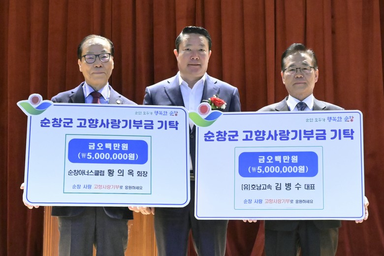황의옥 회장은 순창군 동계면 출신으로, 고향사랑기부제가 시행된 2023년부터 매년 500만 원을 꾸준히 기부해 오며 변함없는 고향사랑을 실천하고 있다.