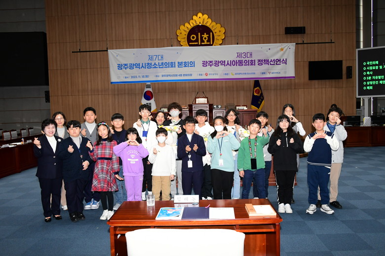 - 청소년증 인식 개선 등 정책 제안…표창장 수여도 [광주 세계타임즈=손권일 기자] 광주광역시(시장 강기정)는 지난 18일 광주시의회 본회의장에서 제7대 청소년의회 본회의와 제3대 아동의회 정책선언식을 개최했다.