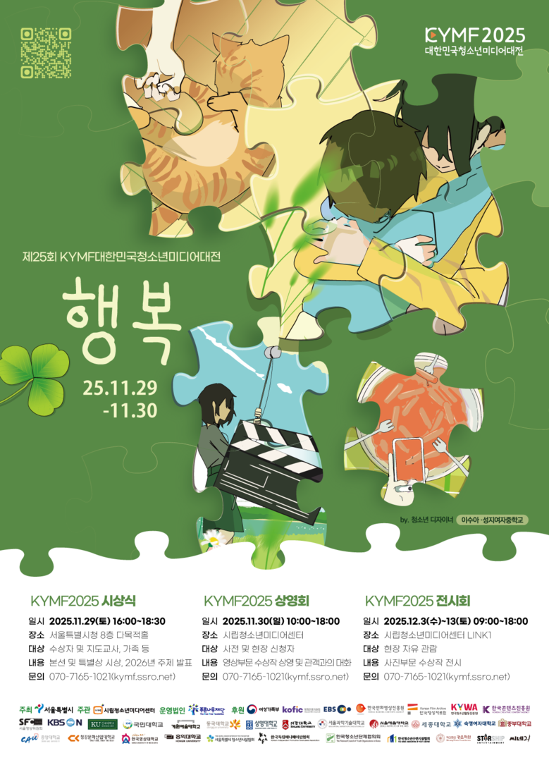 - 29일 시청서 시상식·전시, 30일 시립청소년미디어센터서 상영회 및 관객과의 대화 진행 [서울 세계타임즈=이장성 기자] 서울시는 국내 최대 규모의 청소년 미디어 축제 「제25회 KYMF (Korea Youth Media Festival) 대한민국청소년미디어대전」(이하 ‘미디어대전’)을 오는 11월 29일(토)부터 30일(일)까지 이틀간 서울시청과 시립청소년미디어센터에서 개최한다. 올해는 총 2,623명의 청소년이 작품 출품 등에 참여하며 개막 전부터 국내 최대 청소년 미디어 축제로 관심을 모았다.