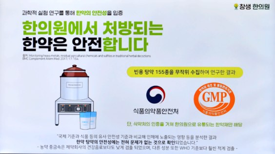 한의원에서 사용되는 모든 한약재는 식약처의 엄격한 관리를 거쳐 유통된다. 기본적으로 관능검사, 중금속, 잔류 농약 등을 철저히 검사 한다 한약도 약이라는 점을 잊지 말자. 의사나 약사가 아닌 일반인이 이약 저 약 마구잡이는 위험천만한 일이다 한약도 전문적 지식 없이 TV나 민간요법을 믿고 무턱대고 복용하면 위험하다