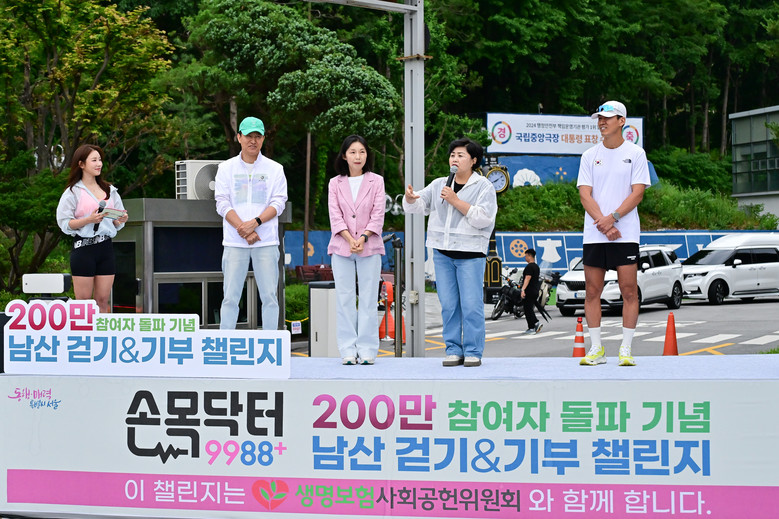 [서울 세계타임즈=이장성 기자] 서울특별시의회 보건복지위원회 김영옥 위원장(국민의힘, 광진3)은 6월 14일(토) 오전 8시 남산 국립극장 문화광장에서 개최된 『손목닥터9988 200만 참여자 돌파 기념 남산 걷기&기부 챌린지』 행사에 참석하여 시민들과 함께 남산 둘레길 걷기와 나눔 챌린지에 동참하였다.