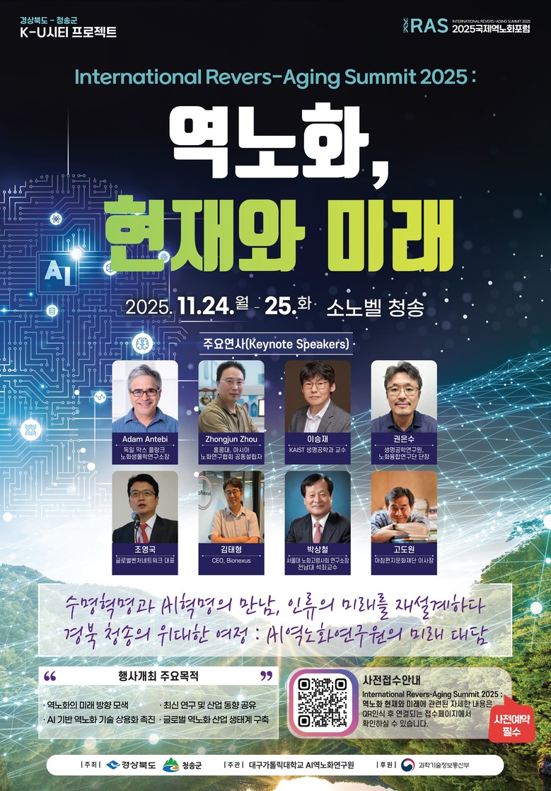 경상북도는 2024년부터 ‘청송 AI 역노화 연구단지’ 조성을 추진해 왔으며, 연구·AI·산업 협력 기반을 확장하기 위해 이번 서밋을 기획했다.