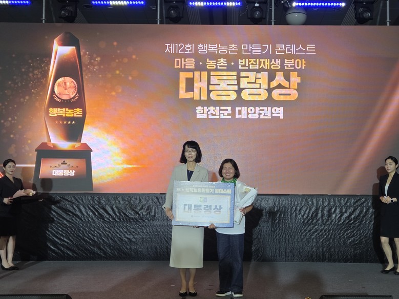 - 합천군 대양권역 행복농촌만들기 대상, 대통령상 수상(종합 1위)
