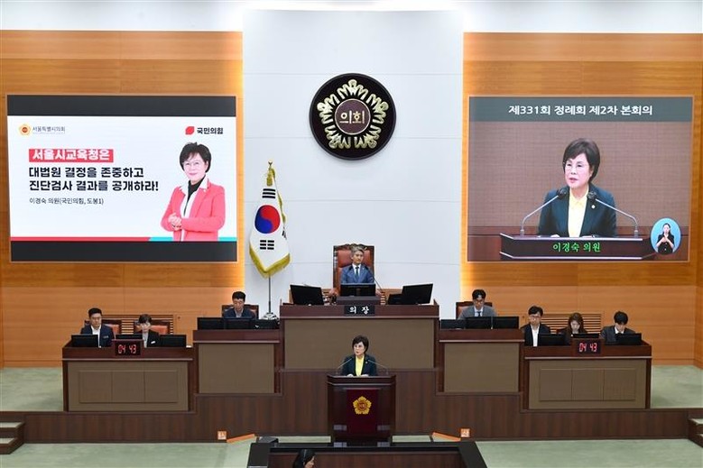 [서울 세계타임즈=이장성 기자] 국민의힘 이경숙 서울시의원은 11일 열린 서울시의회 제331회 정례회 제2차 본회의에서 5분 자유발언을 통해, 서울시교육청에 대해 대법원 판결을 존중하고 기초학력 진단검사 결과를 투명하게 공개할 것을 강력히 촉구했다.