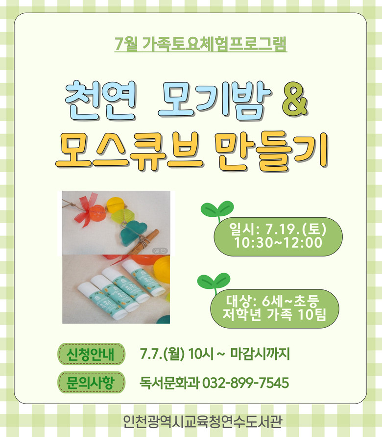 특히 여름철 실생활에서 직접 사용할 수 있는 제품을 만드는 활동을 통해 가족 간 유대감을 높이고, 힐링의 시간을 경험할 수 있을 것으로 기대된다.
