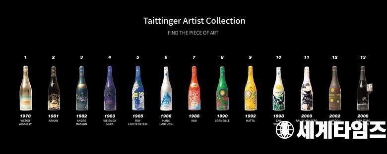 하이트진로(대표 김인규)는 샴페인 떼땅져(Taittinger)의 ‘아티스트 컬렉션’ 13가지 빈티지를 국내 최초 출시한다고 23일 밝혔다.