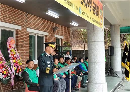 | ▲육군사관학교 생도대장 박후성 장군 대회사 모습 |