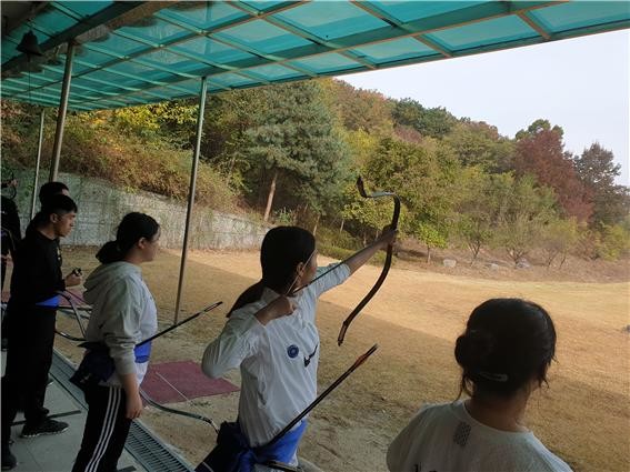 | ▲육군사관학교 화랑정에서 제5회 육군사관학교장기 국궁경기 모습 |