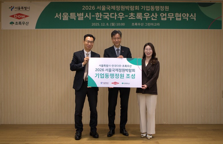 [서울 세계타임즈=이장성 기자] 서울시는 2025년 12월 8일, 다국적 소재 과학 회사인 한국다우와 서울숲에서 진행될「2026 서울국제정원박람회」기업동행정원 조성을 위한 업무협약을 체결했다고 밝혔다.