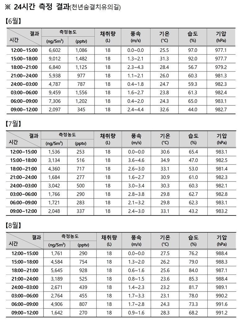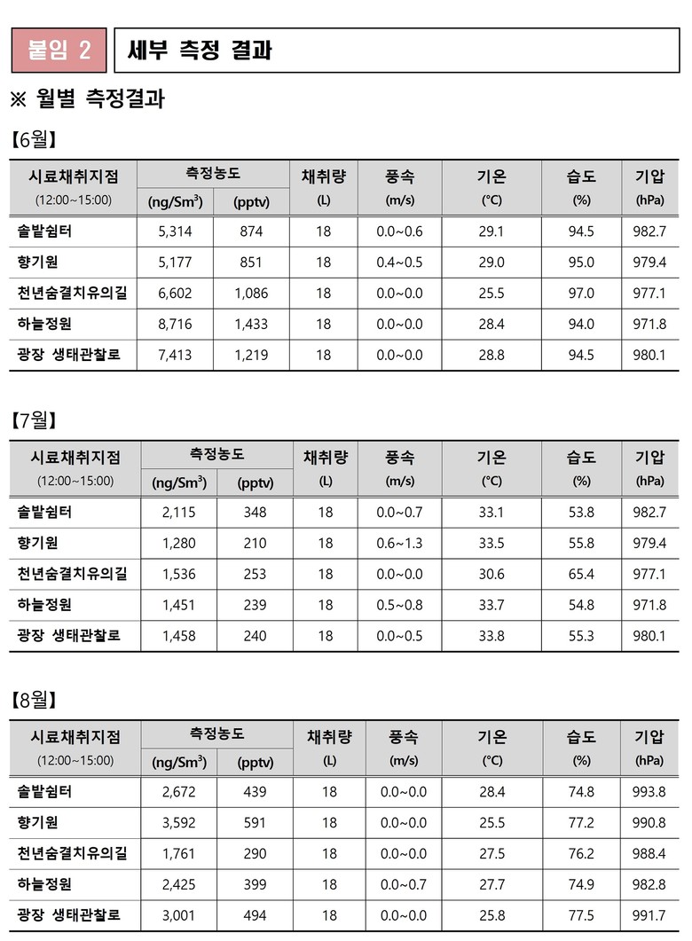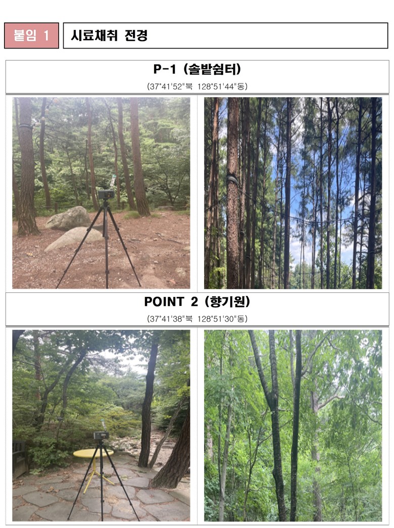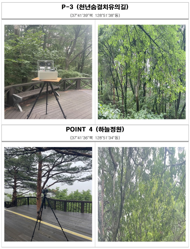 신인철 강원특별자치도 보건환경연구원장은 “도내 주요 산림휴양지의 피톤치드 조사를 지속적으로 실시해 산림의 치유적 가치를 홍보하고, 도민 건강 증진에 도움이 되는 정보를 꾸준히 제공하겠다”고 밝혔다.