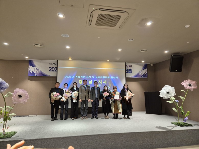 '25년 귀농귀촌유치 유공으로 농식품부 장관 표창에는 ▲창원시 빗돌배기 마을강창국 위원장, ▲의령군 강정희 주무관, 도지사 표창에는 귀농귀촌 및 도농교류 활성화 유공으로 ▲창녕 우포가시연꽃마을 홍정희 사무장, ▲ 하동 의신베어빌리지마을 최다희 사무장, ▲사천시 김여랑 팀장, ▲거창군 임진성 주무관이 수상했다.