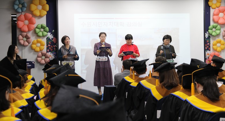 | ▲수원시민자치대학 2학기 수료식 행사 ‘수강생 연극’이 진행되고 있다.(사진=수원시정연구원) |