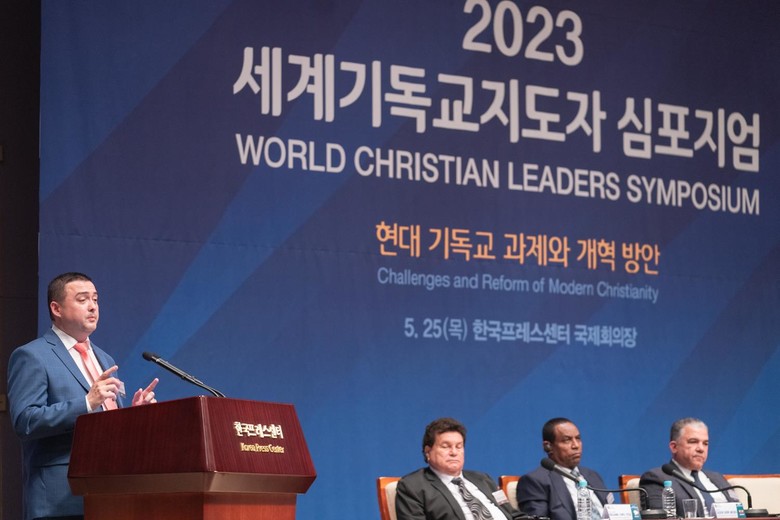 [세계타임즈 = 백진욱 기자] 한국프레스센터 국제회의장에서 '현대 기독교의 과제와 개혁 방안'을 주제로 한 '2023 세계기독교지도자 심포지엄'이 열렸다.