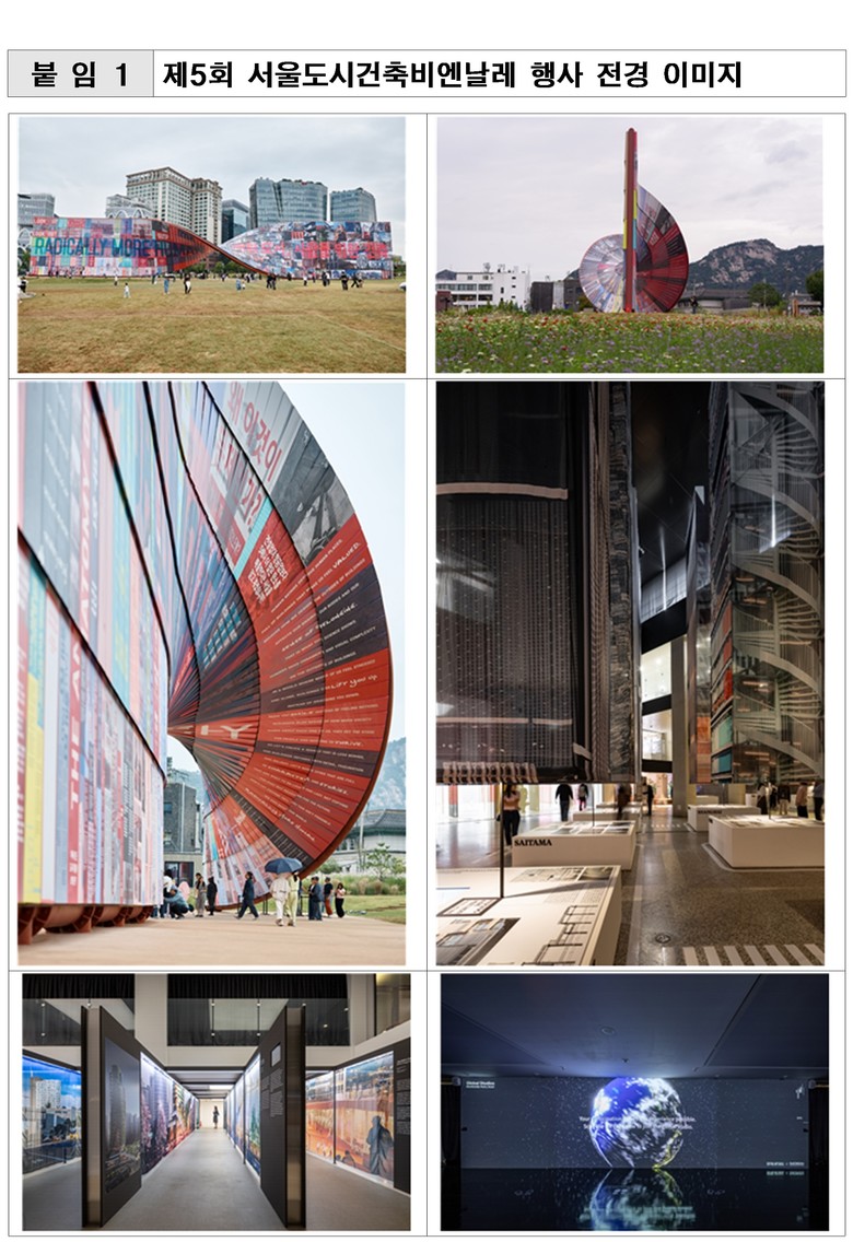 한편, 오는 11월 18일(화) 폐막을 앞두고 시는 온·오프라인을 연계한 시민참여 이벤트 ‘서울도시건축비엔날레 Final Week! 현장 방문 인증 이벤트’를 운영한다. 열린송현 녹지광장에서 진행되는 이번 프로그램은 다양한 경품과 함께 시민참여의 즐거움을 더하며, 막바지 관람 열기를 이어갈 예정이다.