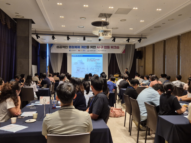 이번 워크숍에는 인천시 및 중구·동구·서구 행정체제개편 출범준비단 총 80여 명이 참석해, 2026년 7월 1일 시행 예정인 행정체제 개편의 성공적 추진을 위한 주요 현안을 논의하고, 시·구 간 소통과 협력을 강화하는 뜻깊은 자리이다.