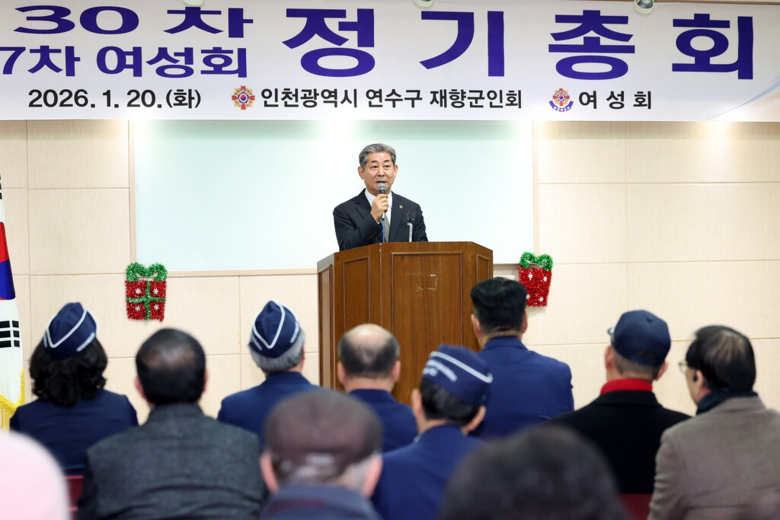 [인천 세계타임즈=심하린 기자] 인천광역시의회 정해권 의장(국·연수구1)은 20일 인천시 연수구 보훈회관에서 열린 ‘2026년 제30차 연수구 재향군인회 및 제27차 연수구 재향군인회 여성회 정기총회’에 참석해 회원들을 격려했다.