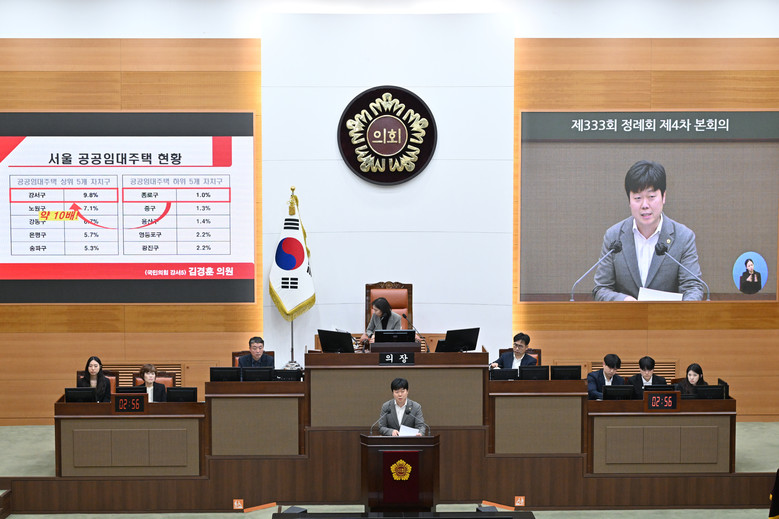 [서울 세계타임즈=이장성 기자] 서울특별시의회 김경훈 의원(국민의힘, 강서5)이 지난 16일 제333회 정례회 5분자유발언에서 이재명 정부의 강서구 내 유휴부지 공공임대주택 확충 계획의 문제점을 지적하고 정부 및 서울시에 주민 목소리를 반영한 균형 잡힌 주택 정책을 실현해 줄 것을 강력히 촉구했다.