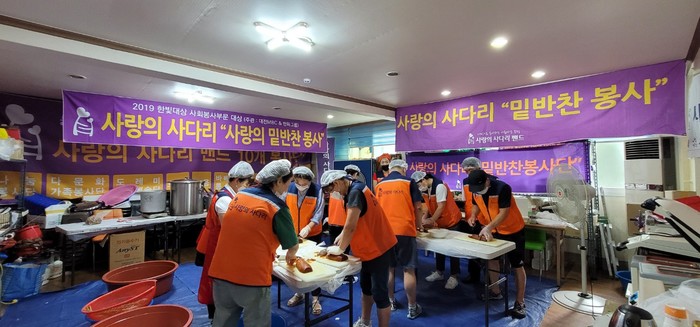 9천명 SNS 대전시 봉사단체 사랑의 사다리 밴드(리더 이정제)는 지난21일 오전9시~오후1시.동구 소외계층 30가정에게 청태무침, 양파오이무우 초절임, 무짱아치 3종류의 밑반찬을 만든 후 각 가정에 배달을 하였다.