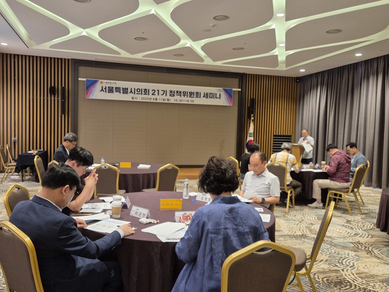 [서울 세계타임즈=이장성 기자] 이상훈 서울특별시의회 정책위원장(더불어민주당, 강북2)은 8.11(월)~8.12(화) 양일간 제21기 정책위원회 정책 연구과제 선정 등 하반기 위원회 활동계획과 일정 논의를 위한 워크숍을 실시했다고 밝혔다.