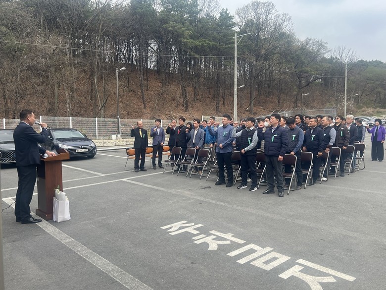 이번 행사는 시내버스 교통사고와 민원을 예방하고, 안전하고 친절한 대중교통 서비스를 정착시키기 위해 한국교통안전공단 대전세종충남본부 등 유관기관과 협력해 마련됐으며, 전병석 계룡버스 노조위원장의 무사고ㆍ무민원 실천 서약서 낭독을 시작으로 계룡버스 운수종사자 200여 명의 구호 제창을 통해 안전 운행에 대한 의지를 다졌다.