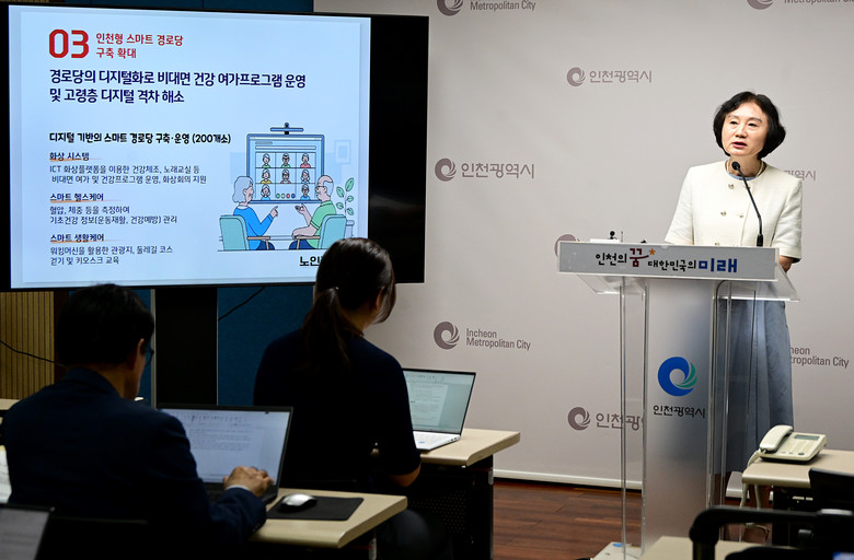 [인천 세계타임즈=심하린 기자] 인천광역시(시장 유정복)는 초고령사회 진입에 대비해 어르신들의 건강하고 활기찬 노후생활을 지원할 수 있도록 맞춤형 디지털 복지환경 조성을 위한 ‘인천형 스마트 경로당’을 확대 구축한다고 밝혔다.