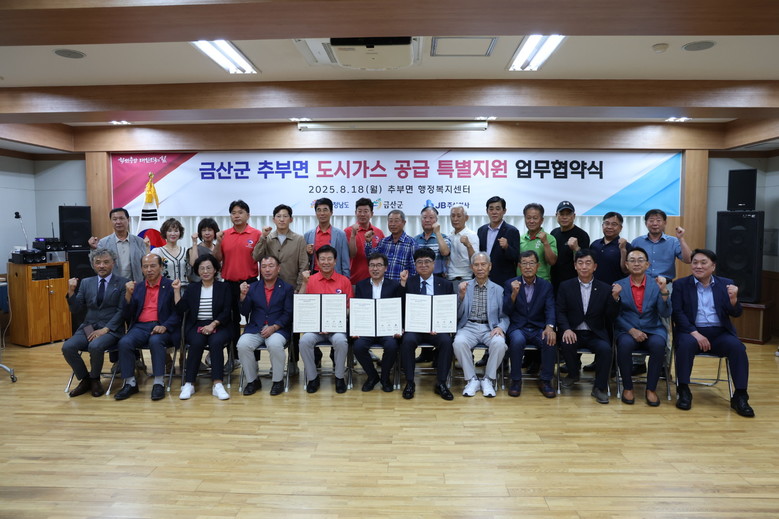 협약에 따라 도와 금산군은 도시가스 배관 설치를 위한 특별지원금을 확보 및 행정 지원에 나서고, 제이비(JB) 주식회사는 에너지복지 지원을 위해 2028년까지 공사를 완료한다.