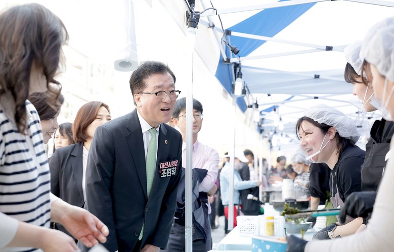 [대전 세계타임즈=이채봉 기자] 대전시의회 조원휘 의장은 11일 유성구종합사회복지관에서 개최된 사랑나눔 바자회에 참석해 나눔의 가치를 더해 따뜻한 이웃 사랑을 실천하는 나눔문화 확산에 아낌없는 지원을 약속했다.