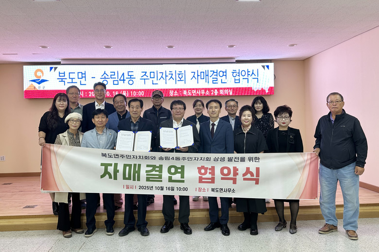 이날 협약식에는 이근덕 북도면 주민자치회장, 김효진 송림4동 주민자치회장을 비롯해 고수영 북도면장, 김준수 송림4동장, 양측 주민자치위원 및 관계자 등 20여 명이 참석해 양 단체의 새로운 출발을 축하하며 진행되었다.