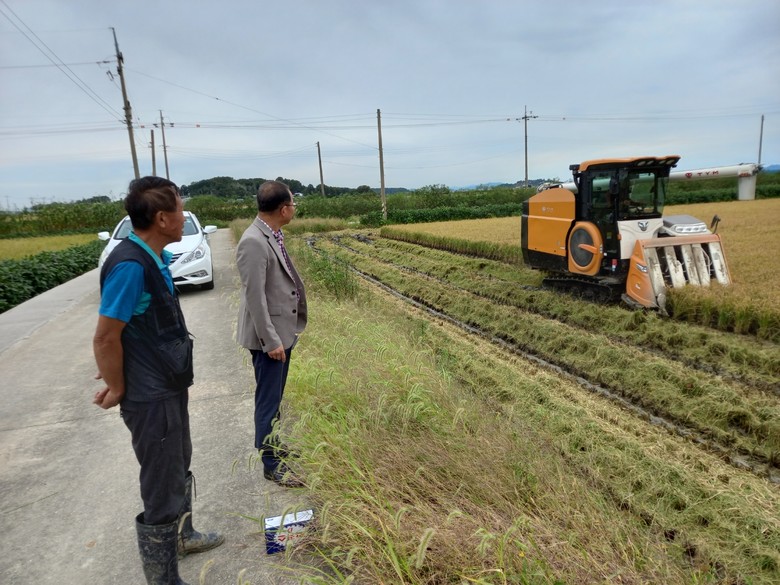 특히, 최근 계속되는 잦은 비 및 병충해로 인한 농민들의 노고를 격려하고, 마을 현안 및 애로사항을 청취하며 벼 수확의 기쁨을 함께 나눴다.