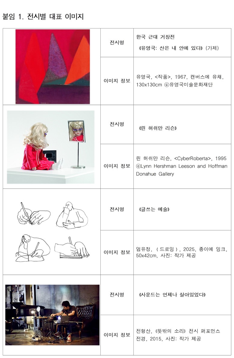 - 남서울미술관, 연례 조각가 개인전 《조숙진》(7월) [서울 세계타임즈=이장성 기자] 서울시립미술관(관장 최은주)은 2025년 미술관 주요 운영 성과를 발표하고, 이를 바탕으로 2026년 주요 전시를 공개했다.