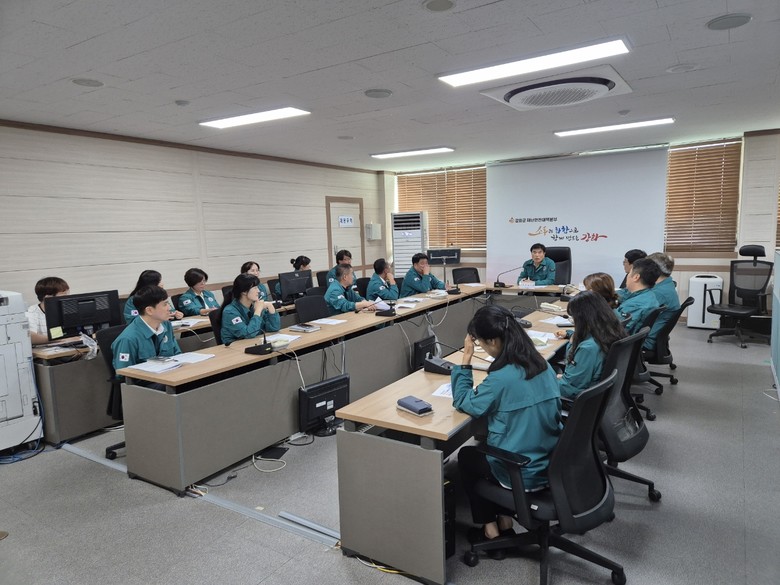 교육에서는 ▲집중호우, 태풍, 폭염 시 현업근로자 안전장구 착용, ▲안전수칙 준수 및 작업중지, ▲폭염으로 인한 온열질환 예방조치 요령, ▲현업근로자에 대한 안전보건 조치 의무사항, ▲산업재해 발생 시 처리절차 등 직무교육이 이루어졌으며, 부서 간 협력사항에 대한 논의도 함께 진행되었다.