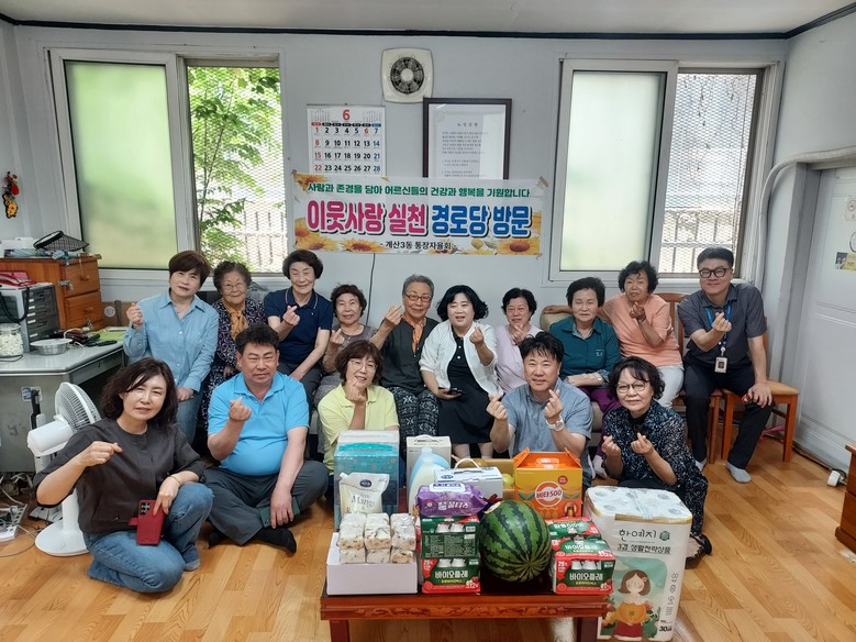 계산3동 통장자율회 김경희 회장은 “올해 순차적으로 관내 모든 경로당을 방문하는 것을 목표로 하고 있다.”라며 “어르신들에게 조금이나마 위로와 힘이 되길 바라며, 앞으로도 소외감을 느끼는 어르신이 없도록 통장자율회가 지역사회 온정을 나누는 데 앞장서겠다.”라고 말했다.