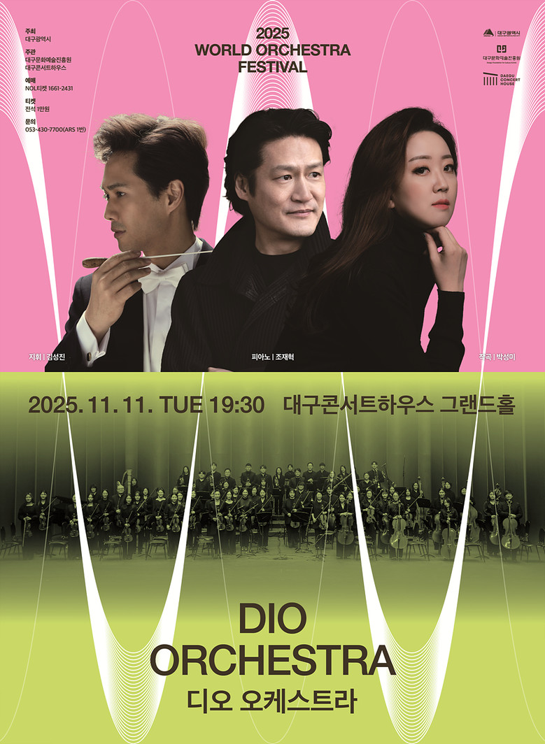 ▸ 11월 11일(화) 19시 30분, 대구콘서트하우스 그랜드홀 [세계타임즈=대구 한윤석 기자] (재)대구문화예술진흥원 대구콘서트하우스(관장 박창근)는 오는 11월 11일(화) 저녁 7시 30분, 그랜드홀에서 <2025 월드오케스트라페스티벌>의 일환으로 대구 지역에서 활발히 활동하는 디오 오케스트라의 공연을 개최한다. 해당 공연에는 김성진이 지휘를, 피아니스트 조재혁이 협연자로 함께해 한층 풍성한 무대를 선사한다.