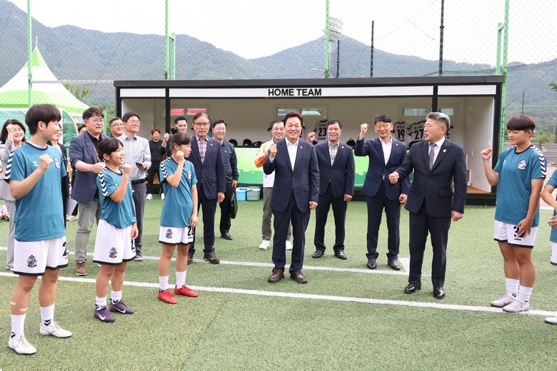 박 지사는 23일, 제54회 전국소년체육대회 사전경기가 펼쳐지고 창녕스포츠파크를 방문해 여자 15세 이하부 경남 대표로 출전한 진주여중 축구부 선수단과 경남축구협회, 경남체육회 관계자들을 만나 격려의 뜻을 전했다.