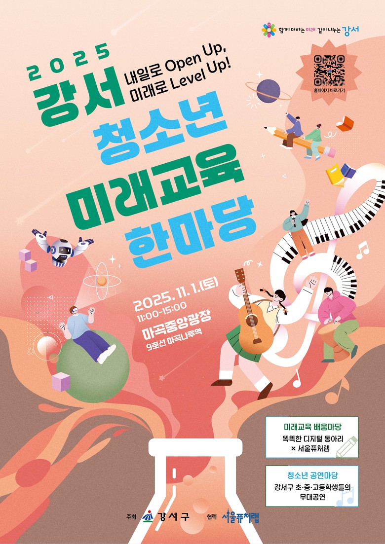 오는 11월 1일(토) 오전 11시부터 오후 3시까지 800여 명 참여 [강서구 세계타임즈=이장성 기자] 서울 강서구(구청장 진교훈)는 오는 1일(토) 오전 11시부터 오후 3시까지 마곡광장(마곡중앙5로 9)에서 ‘2025 강서 청소년 미래교육한마당’을 개최한다.