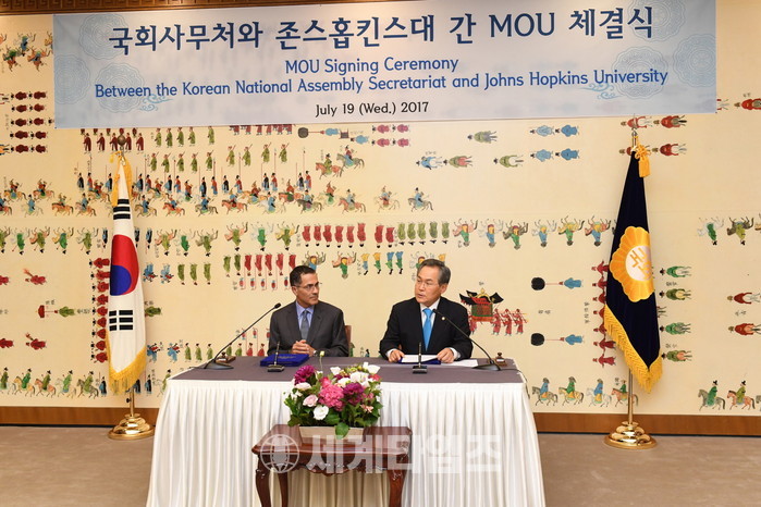 [세계타임즈 이채봉 기자]국회사무처(사무총장 우윤근)는 7월 19일(수) 미국 존스홉킨스대학교와 상호간 교류·협력을 위한 양해각서(MOU)를 체결했다.