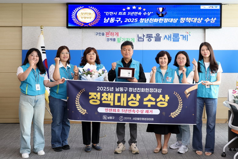 [남동구 세계타임즈=심하린 기자] 인천시 남동구는 ‘2025 청년친화헌정대상’에서 우수 기초자치단체 부문 정책대상을 수상했다고 19일 밝혔다.