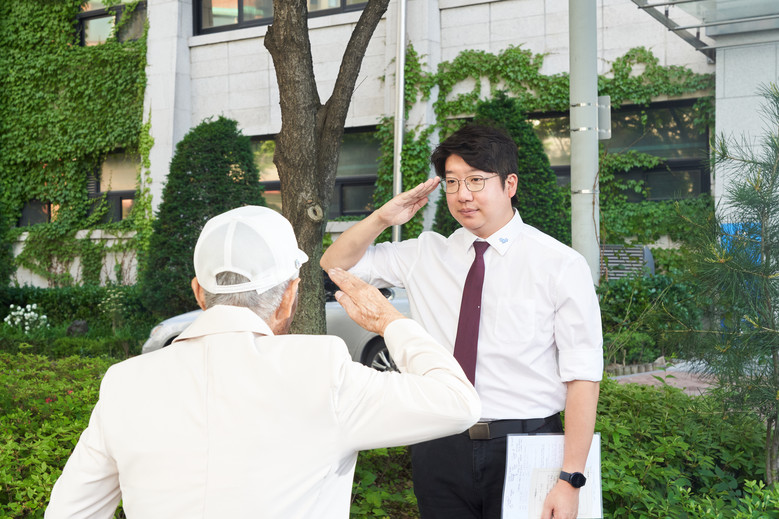| ▲ 작년 5월, 국군포로 귀환용사 간담회 당시 거수경례로 예를 보이는 문성호 서울시의원(참고 사진. 내용과는 무관) |