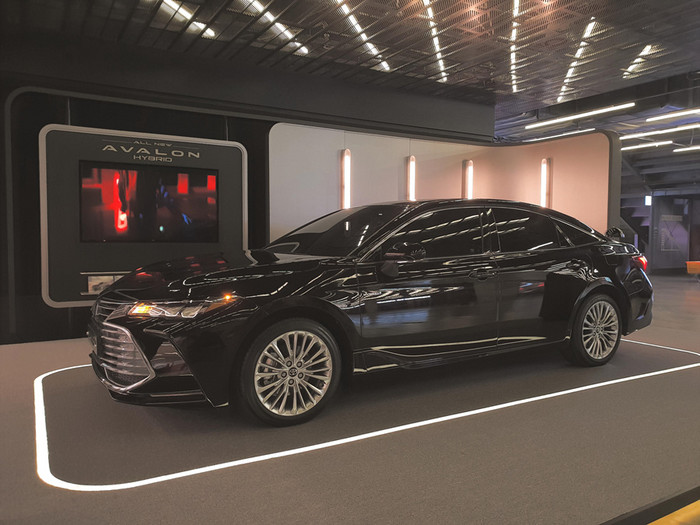 종킴 디자이너의 트레이드 마크인 곡선을 통해 올 뉴 아발론 하이브리드의 디자인 컨셉 ‘테크니컬 뷰티’를 한눈에 느낄 수 있으며, 특히 새롭게 도입된 블래키쉬 브라운 컬러를 돋보이게 해줄 라이팅을 전시 공간 곳곳에 배치해 올 뉴 아발론 하이브리드의 실루엣을 즐길 수 있다.