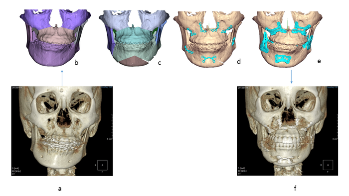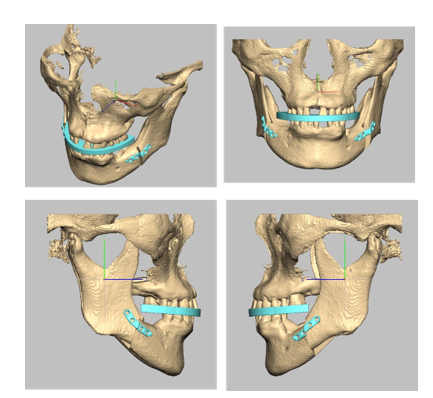 A씨는 얼굴의 좌우길이가 다르고 씹을 때 얼굴이 틀어질 만큼 턱관절 모양이 비대칭으로 컴퓨터시뮬레이션 가상수술을 통해 위턱뼈를 바르게 위치시키고, 아래턱을 위턱의 치아에 맞춘 후 좌우 하악관절부의 과두를 재위치 시켜 비대칭을 개선하는 수술 계획을 세웠다.