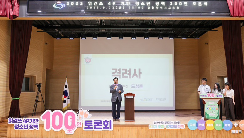 [인천 세계타임즈=심하린 기자] 인천광역시교육청(교육감 도성훈)은 12일 인천봉수초등학교에서 ‘2025 청소년 정책 100인 토론회’를 열었다.