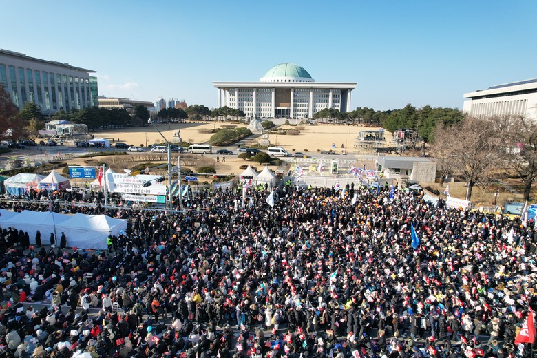 국회 앞에 모인 탄핵 촉구 시민들
